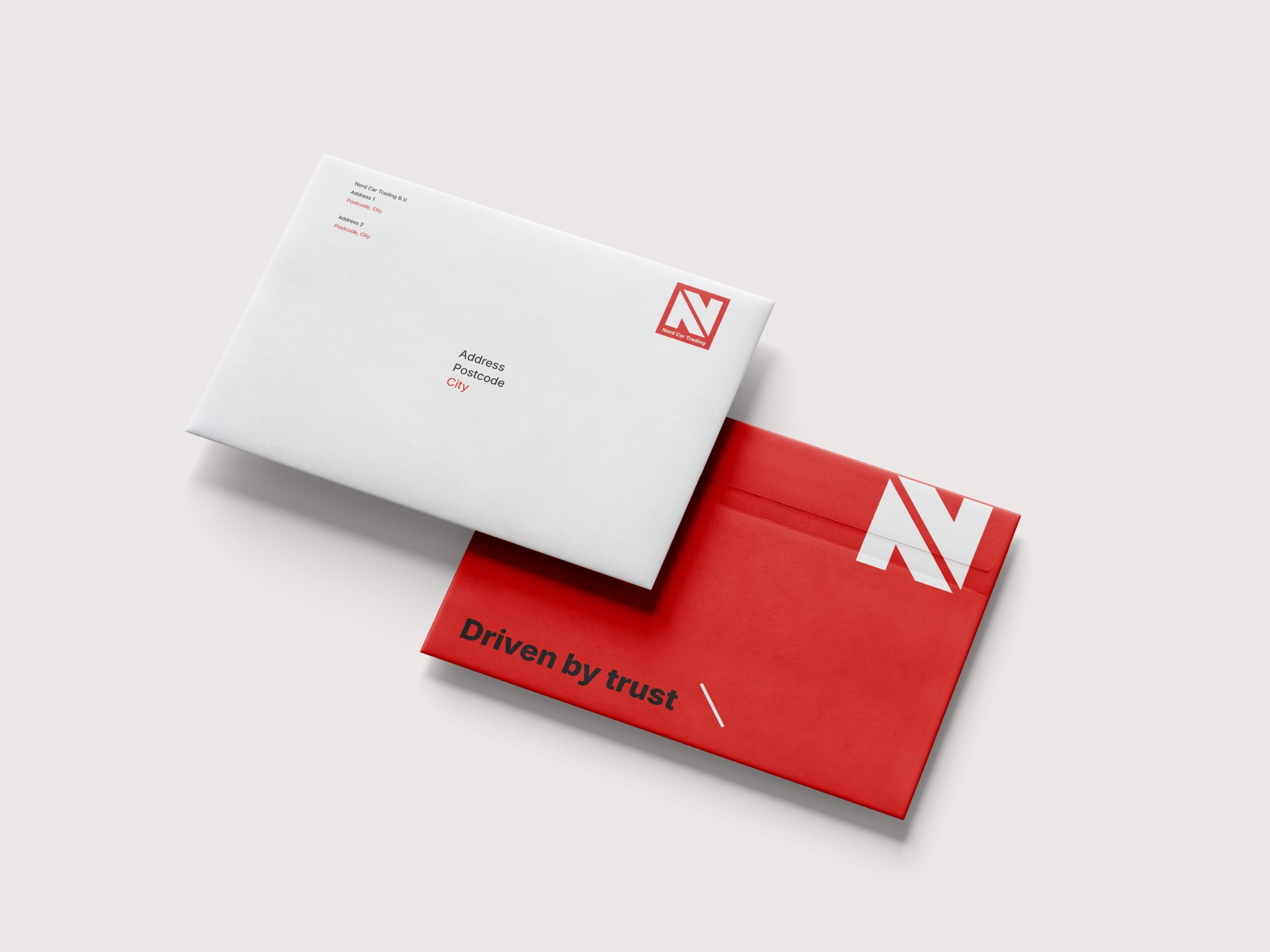 Nord Car Trading is a company specializing in car trading between the Netherlands and Poland. The brand identity draws inspiration from both countries, incorporating the red and white from their flags to create a strong visual connection.